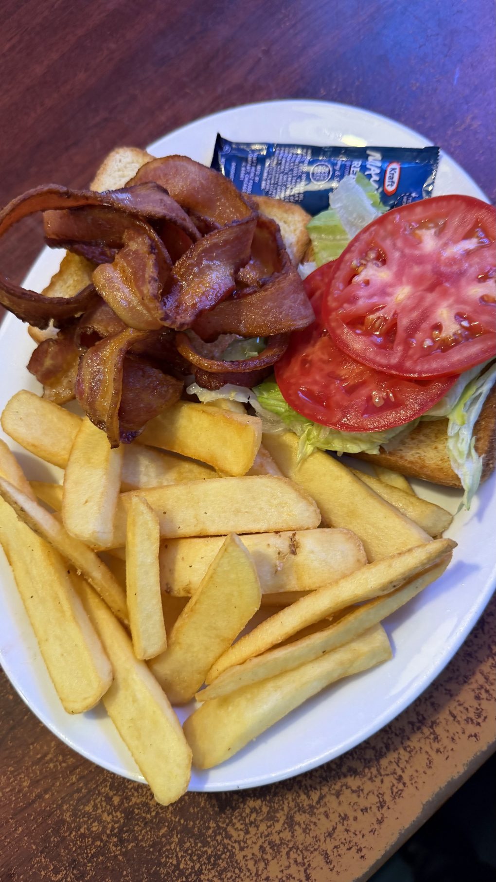 BLT Our BLT is served on Texas Toast and features crispy lettuce, tomatoes and A LOT of bacon. Served with our delicious steak fries! Post navigation Previous post Philly Cheese SteakNext post Grilled Cheese