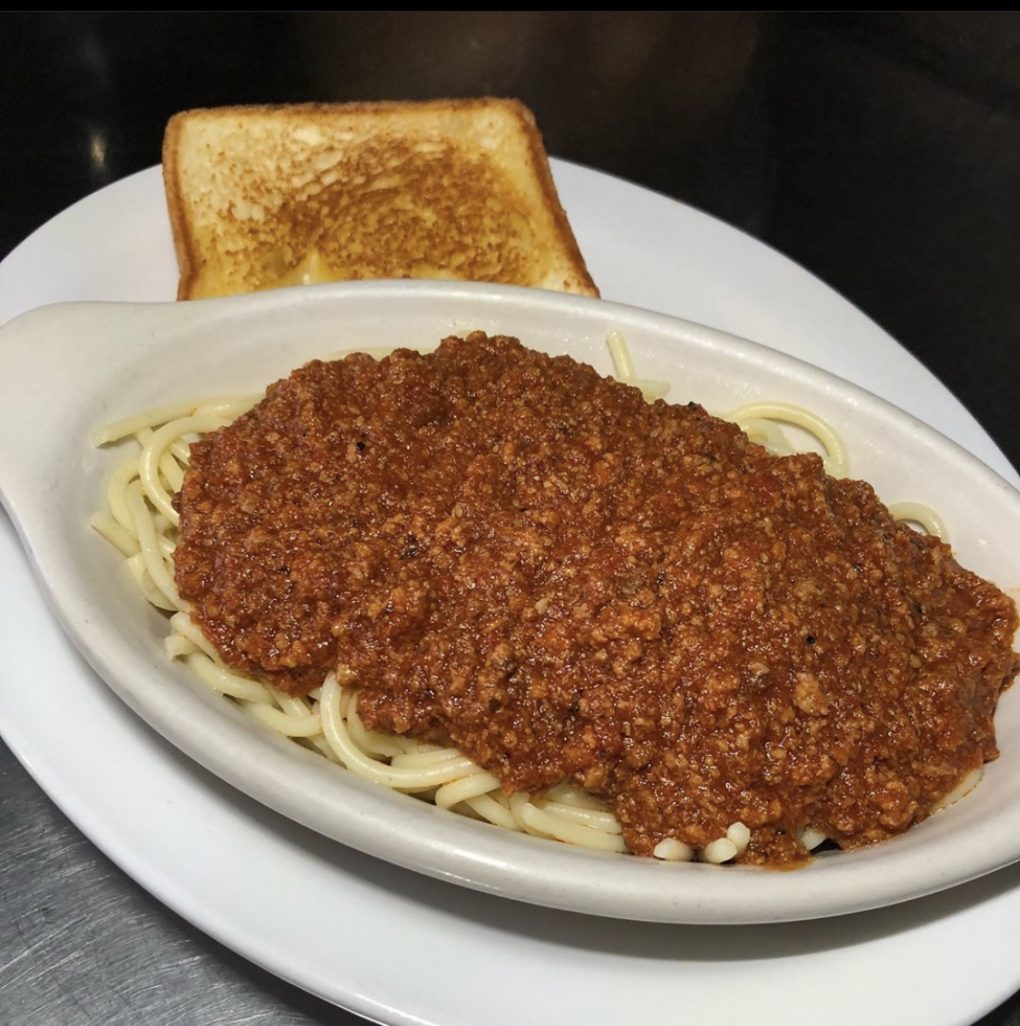 Are you craving Spaghetti? Come and try this with our homemade meat sauce! It come in a half or full order and texas toast.
